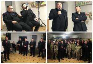 <p style="margin-left:38px; text-align:justify; text-indent:1.0cm"><span style="font-size:11pt"><span style="line-height:normal"><span style="font-family:Calibri,sans-serif">Для наших захисників виступили дует «Замок Любарта» — Назар Пащук та Володимир Тишкун (учасники «Ліги сміху» на «1+1» у складі однойменної команди та актори скетчкому «Країна У»), а також улюблені багатьма «Вар’яти» — Володимир Ковцун (Владзьо) та Віталій Тильний.</span></span></span></p>
