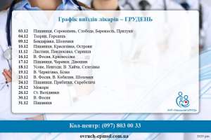 - Графік виїздів лікарів Овруцького центру ПМСД у грудні