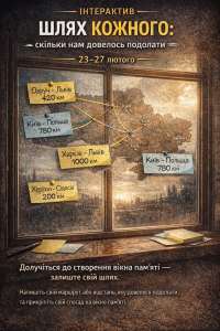 <p>У межах інтерактиву ви зможете написати свій маршрут або відстань, яку довелося подолати, та залишити свій спогад на вікні пам’яті.</p>